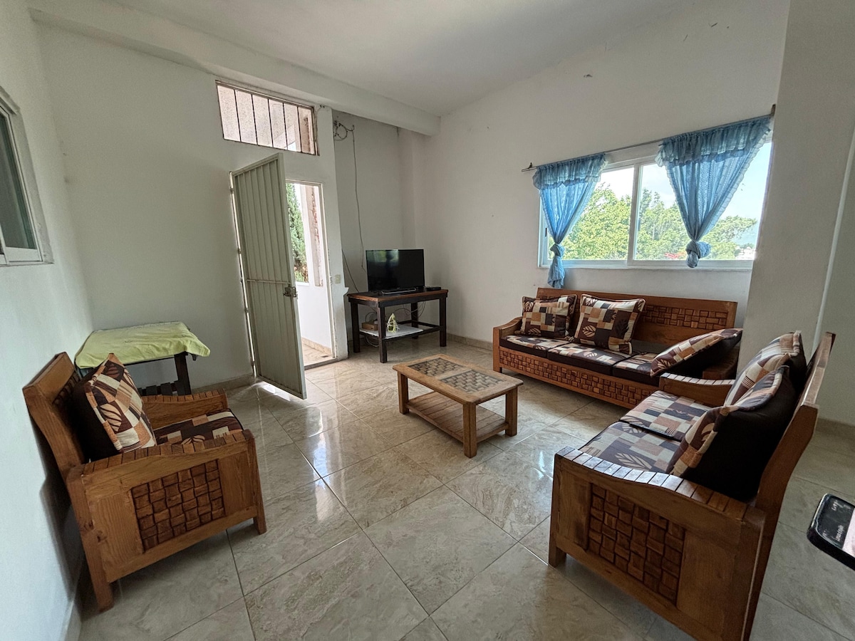 Este hermoso y acogedor departamento; somos anfitriones con experiencia, nuestro objetivo es hacer de tu estancia algo único e inmejorable. *Ubicado a una cuadra y media del centro de Tepoz: un destino único gracias a su atmósfera holística y energética. *Ideal para descubrir y sumergirse en el ambiente local con tu pareja, familia o amigos. *Habitaciones amplias, cocina equipada, comedor y terraza. *Internet para trabajar desde casa. *Estacionamiento. *Pet Friendly.