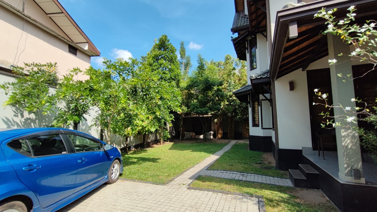 Disfruta del lujo de estilo boutique en esta hermosa casa de diseño arquitectónico a solo 15 minutos del aeropuerto. Disfruta de un elegante dormitorio doble, una elegante sala de estar con modernos y cómodos asientos, comedor, cocina, baño moderno y un tranquilo jardín. En una zona tranquila, pero a solo 5 minutos de la ciudad de Negombo, la playa, los restaurantes y las tiendas. Esta espaciosa unidad con Wi-Fi y aire acondicionado es ideal para parejas, amigos o viajeros solitarios que buscan comodidad, privacidad, conveniencia y una estancia verdaderamente relajante.