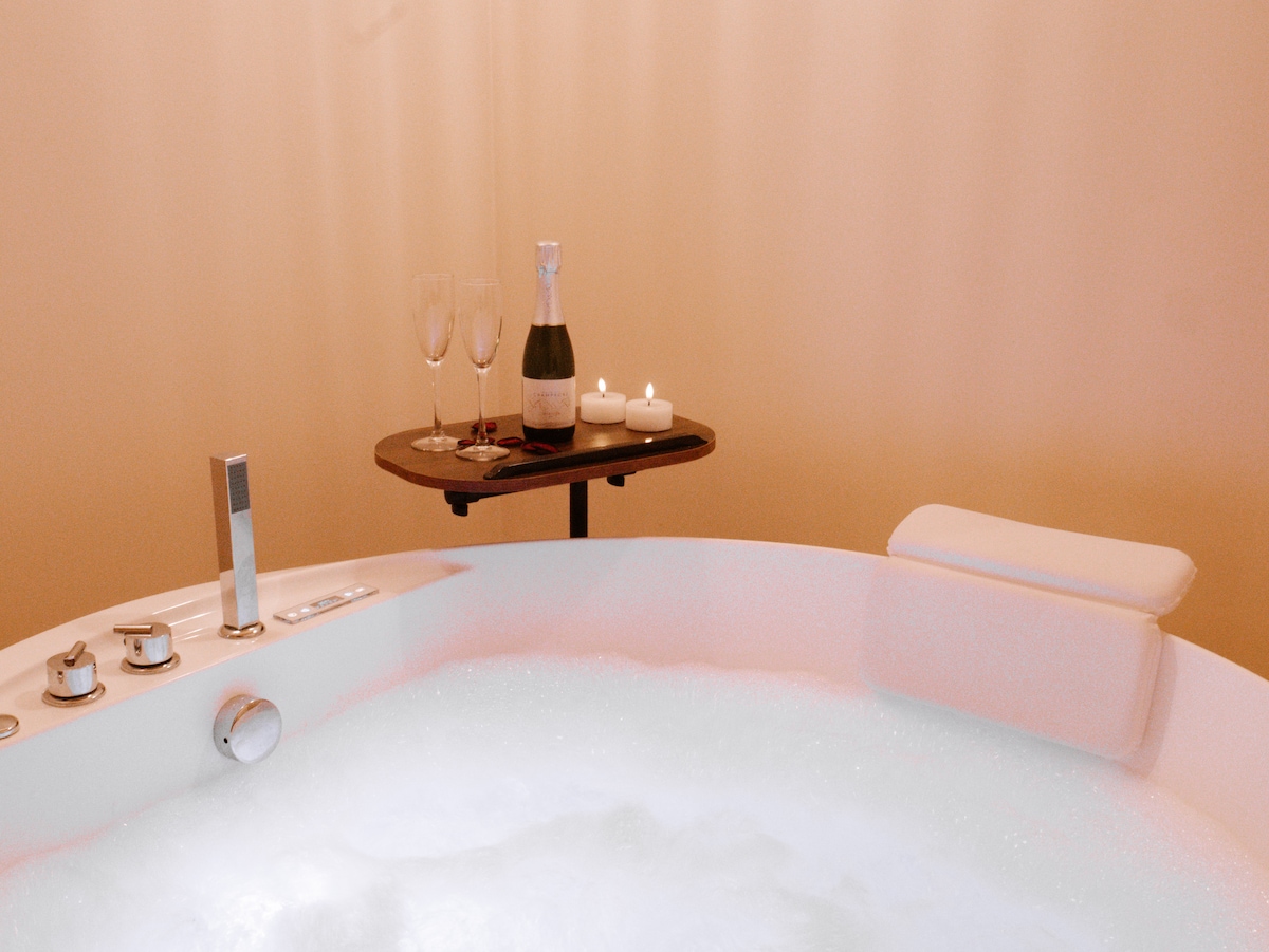 Bienvenido a tu Love Room privada con acceso autónomo. ¡Tómese el tiempo para cuidarse!🧘 Le damos el remedio: Para empezar, disfrute del baño con ducha doble🚿 y luego relájese en un jacuzzi de🫧 92 chorros y 5 plazas. A continuación, purifíquese en la sauna de infrarrojos 🏜️seguida de una ducha muy fresca❄️. Es hora de hidratarse en la terraza privada🍹. Por último, déjese caer en los brazos de Morfeo en una habitación de ensueño 🛌 Opciones bajo petición.
