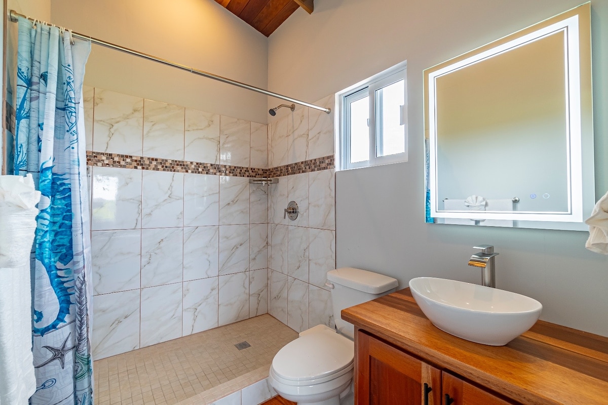 ¡Experiencia de lujo, sostenible y fuera de la red! Suite de invitados frente al mar en el primer piso con nuevo sistema solar, piscina infinita, muelle, aire acondicionado y TV inteligente. Disfruta el amanecer y el atardecer desde el muelle. Ubicada en un pintoresco camino de la selva de arena es nuestra auténtica casa de estilo caribeño en terrenos privados cerrados en la exclusiva zona residencial de South Point, donde estarás lejos de todo, pero lo suficientemente cerca del pueblo. Este es un lugar que llamamos “hogar” que ofrecemos felizmente como un verdadero alquiler vacacional para que otros disfruten.
