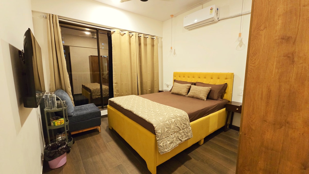 Entra en un nuevo 1BHK con interiores verdes frescos y un ambiente elegante y lindo. Ubicada en una torre de nueva construcción, la casa cuenta con muebles IKEA nuevos, un acogedor dormitorio, un moderno espacio habitable y dos televisores para tu entretenimiento. Con una ubicación céntrica y un fácil acceso a la ciudad, la playa está cerca, por lo que es ideal tanto para escapadas relajadas como para viajes de trabajo. Luminoso, cómodo y cuidadosamente diseñado para una estancia agradable.