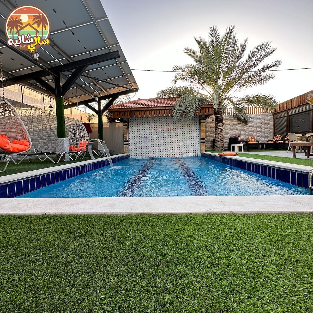 Disfruta de los días de verano más hermosos en el mar Muerto Relájate con toda la familia en este lugar tranquilo para hospedarte. 3 dormitorios con vista panorámica a la piscina 2 piscinas La piscina al aire libre mide 5 × 10 m y tiene una profundidad de entre 90 y 190 cm. Una piscina cubierta de 2,5 x 3 m y 60 cm de profundidad dentro del dormitorio principal Una zona privada y encantadora para los juegos de tus hijos Mesa de billar privacidad total Equipo de DJ Parrilla grande al aire libre con horno Zarb