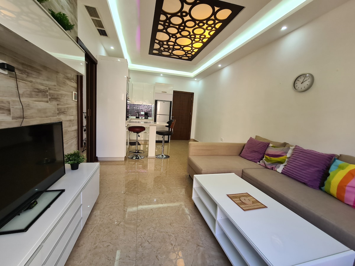 A Modern 100sqm apartment located at most nice and quiet neighborhood in Amman, this apt is designed carefully to accommodate desires, where you find your total comfort during Long - short stay ,weather you’re alone or with Family, and either you’re in a vacation or in business trip. When you plan trip to Petra, Rum, Aqaba, Dead Sea, and don’t want to waste time in traffic, this app would be your best choice Air conditioning is only in Living rooms while bed rooms have fans only