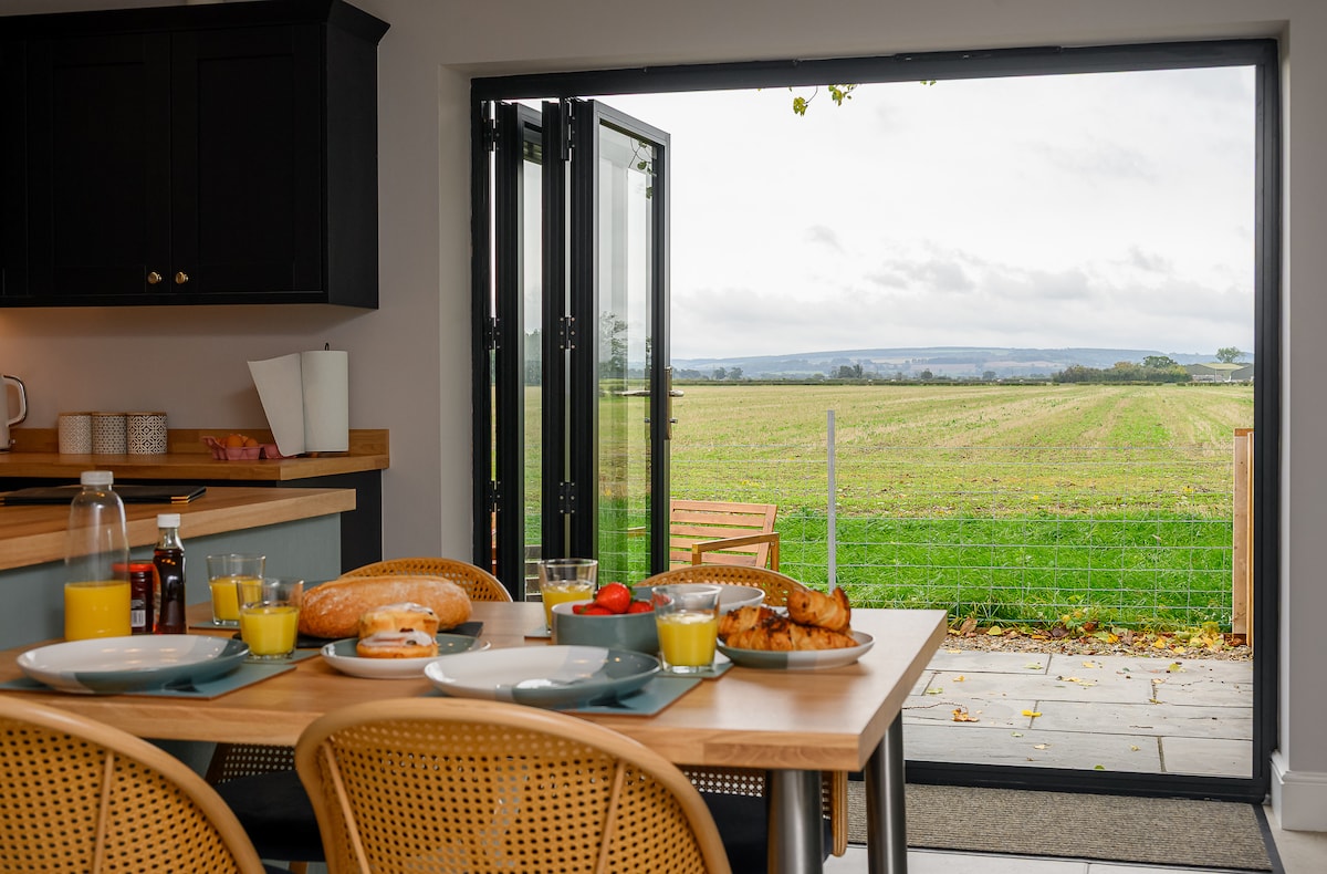 Recently converted, the Owlery is the perfect self-catered rural escape for couples. With its double height vaulted ceiling and full height double aspect windows the open plan kitchen living diner offers a light and airy space to unwind and enjoy the view of surrounding fields. The bedroom has a Kingsize bed, Egyptian cotton sheets and En-Suite shower room. The Bathroom offers complimentary Bramley products and cotton bathrobes. Both areas are underfloor heated. There is a private garden.