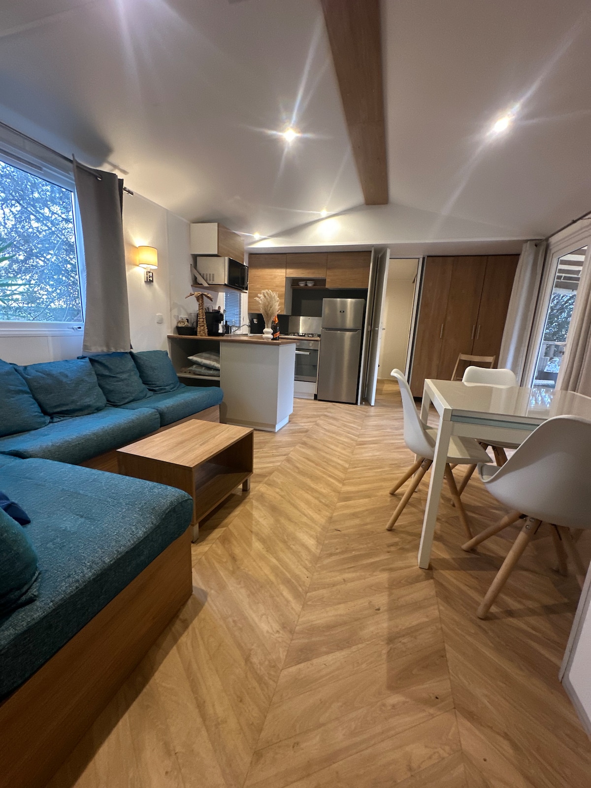 Relájese en este tranquilo y elegante mazet con jacuzzi Spa equipado con luces cambiantes en el agua, música conectada por bluetooth en su terraza También oirás el sonido de los pájaros y las cigarras. A las puertas de la compañera El alojamiento se encuentra en plena naturaleza junto a un lago y un sendero de senderismo Aire acondicionado, wifi, estacionamiento, terraza jacuzzi spa, bicicletas Alojamiento Nuevo entrepiso ducha a ras de suelo Cocina equipada lavadora bicicletas jaccuzi Spa terraza naturaleza