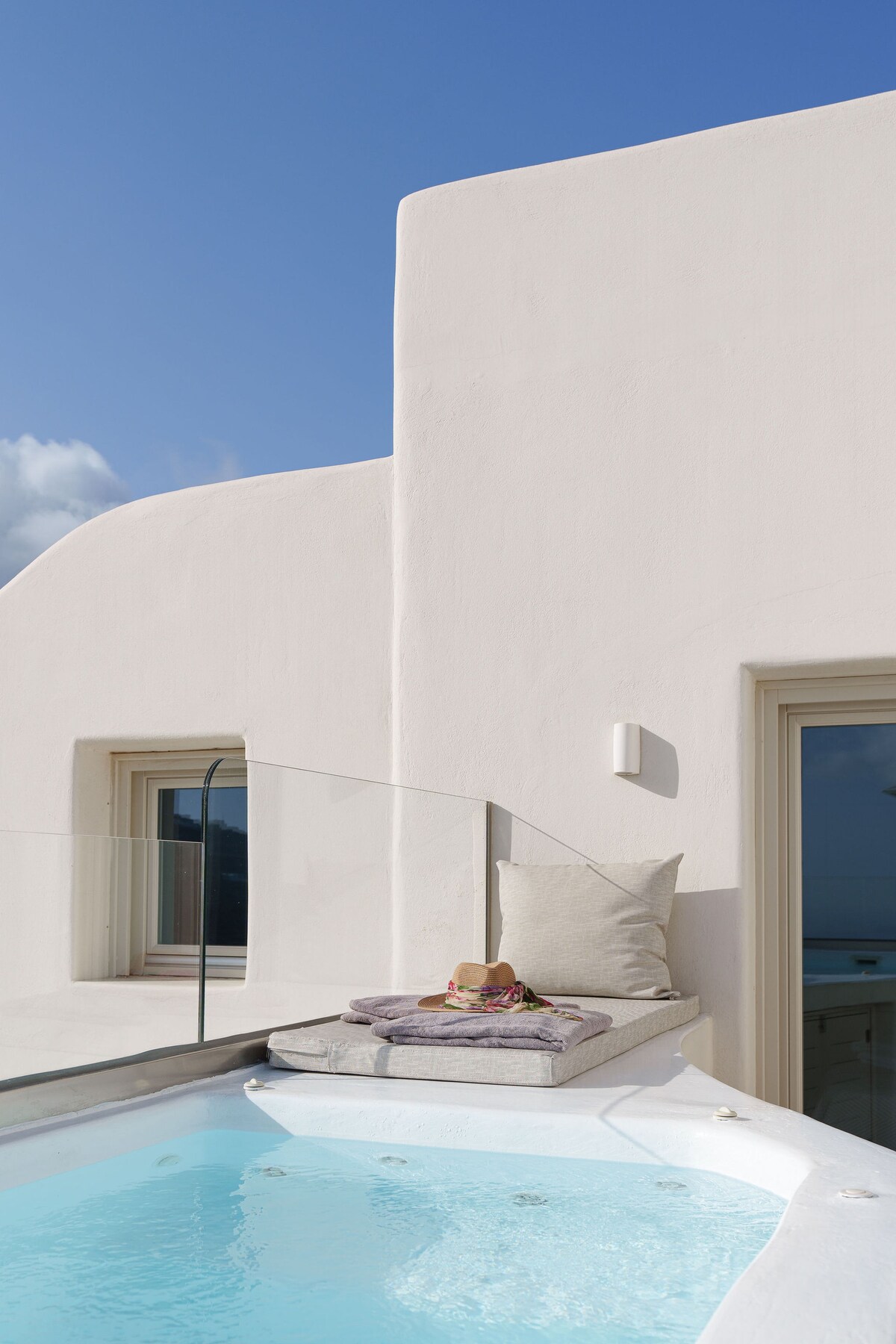 Suite con piscina de inmersión al aire libre y vistas a las cúpulas azules