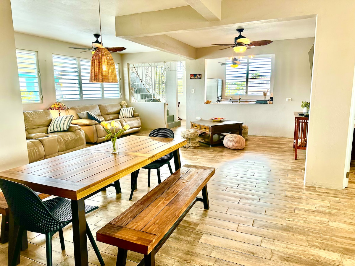 ¡Absolutamente magnífico santuario FRENTE AL MAR! Tu propio paraíso privado a menos de 10 minutos de la plaza de Rincón. Ideal para familias con Pack-n-Play y juegos/rompecabezas para niños. Aire acondicionado, wifi de alta velocidad, entrada privada con patio exclusivo, gran balcón en la planta superior y terraza en la planta baja. Televisión inteligente 4K de 50 pulgadas con Netflix, Amazon y muchos otros. Cocina totalmente equipada, parrilla de gas de acero inoxidable al aire libre, utensilios, ropa de cama, artículos de aseo, equipo de playa... ¡todo lo necesario para una estancia perfecta!