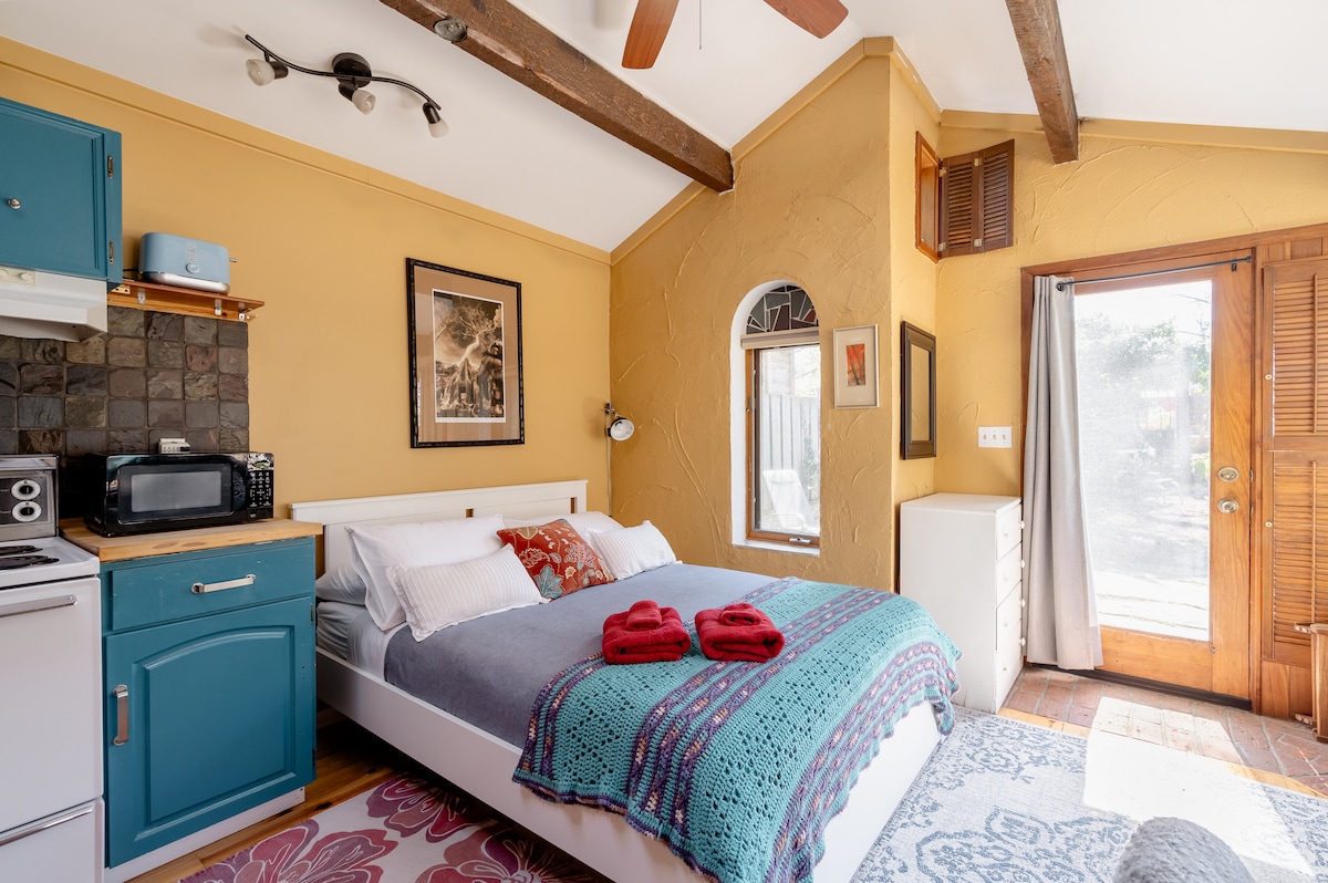 Disfruta de una casa de campo privada y urbana ubicada en un hermoso patio trasero lleno de árboles en el barrio de Junction, cerca del centro de Guelph, con todas las comodidades. Cómoda cama tamaño queen, chimenea de gas natural, cocina totalmente surtida, ducha separada, baño de 2 piezas, altillo adicional para dormir, patio trasero privado de losa y sauna. Ubicado en el corazón de la comunidad intencional de Junction Village, los huéspedes pueden conectarse con otras personas o tener una experiencia de retiro privada.