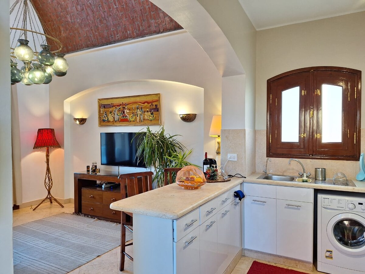 ¡Te damos la bienvenida a esta escapada de ensueño en el lujoso Ancient Sands Resort! Aquí, el encanto oriental se encuentra con el estilo moderno. Disfruta de la acogedora piscina justo al lado del departamento, o de la gran piscina con numerosas tumbonas y sombrillas a solo unos pasos. Con su ubicación privilegiada y lujosas comodidades, nuestro apartamento en Ancient Sands es la opción perfecta para tus vacaciones en El Gouna.
