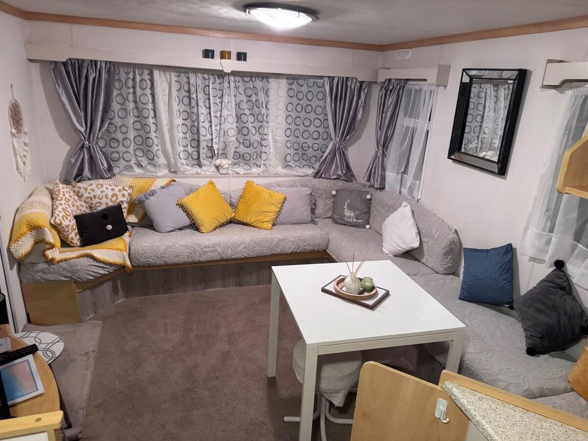 Caravana para 5 personas. Se aceptan mascotas. Estacionamiento. Ropa de cama incluida