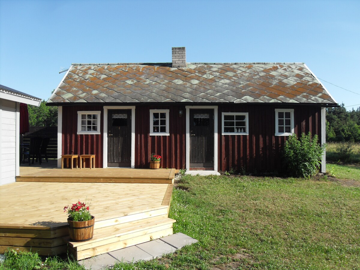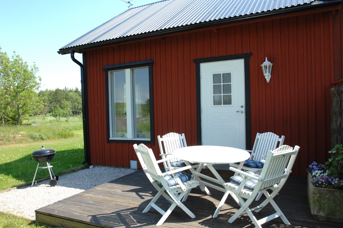 Pequeña cabaña en un entorno rural a 8 km de Visby. La cabaña está equipada con cocina, smartTV, ducha y una cómoda cama doble. Para llegar a las otras camas de la cabaña, hay una escalera en el exterior de la casa conduce a la planta superior. Tenga en cuenta que no hay baño en la planta superior, por lo que debe pasar por el exterior de la casa para ir al baño. Fuera de la cabaña hay una pequeña terraza, parrillas y grandes áreas para jugar. La ropa de cama y las toallas están incluidas en el alquiler.