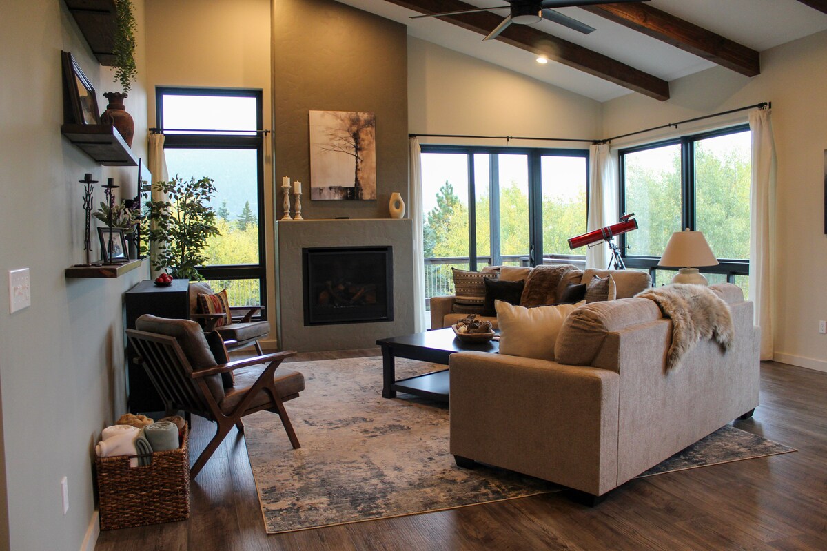 El Aspen Grove Lodge es una cabaña de estilo alpino actualizada con encanto rústico. Combina unas vistas preciosas y una sensación de aislamiento para crear la experiencia de montaña perfecta. ¡A pocos minutos de remontes, deportes de invierno, golf de campeonato y club de campo, ciclismo de montaña de clase mundial, pesca, senderismo, tirolesa, paseos en bote, camping y mucho más! Amplia vida de montaña para ti y tu grupo. No creerás la vida silvestre que visita nuestro lugar; literalmente puedes alimentar a los ciervos desde la terraza.