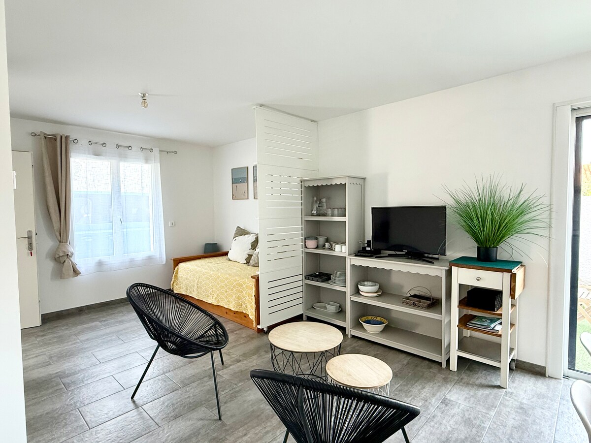 ✨ Elegante nido a 1 minuto del mar, perfecto para una estadía en Angoulins. 🏡 Este encantador alojamiento para dos personas le da la bienvenida para una escapada relajante. Ofrece todas las comodidades necesarias: cama hecha a su llegada, cocina equipada, ducha sensorial/hammam y terraza para sus momentos de relajación. 🌊 Disfrute de un entorno tranquilo, entre paseos por la costa, baños o descubrimientos locales. Las tiendas de proximidad y restaurantes son accesibles en pocos minutos.