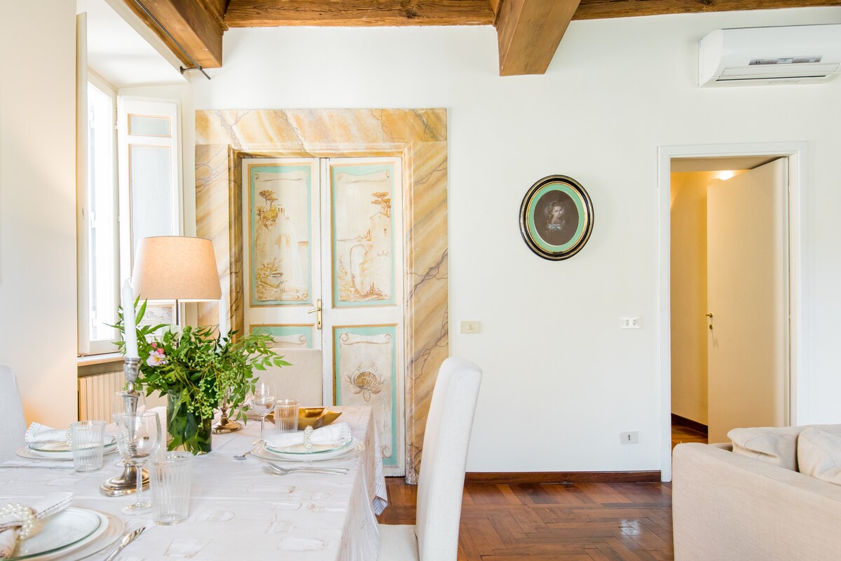 Apartamento encantador y acogedor, amueblado en un estilo elegante y tradicional, espacioso y lleno de luz, desde el que puedes disfrutar de una vista maravillosa de Roma. Se encuentra en el centro de la ciudad, en el último piso de un antiguo edificio del gueto, a pocos metros de Piazza Venezia, Largo di Torre Argentina, Campo de' Fiori. Gracias a su ubicación y a todos los consejos que puedo darte, en solo unos pasos encontrarás la gran belleza, cultura y vida de Roma.