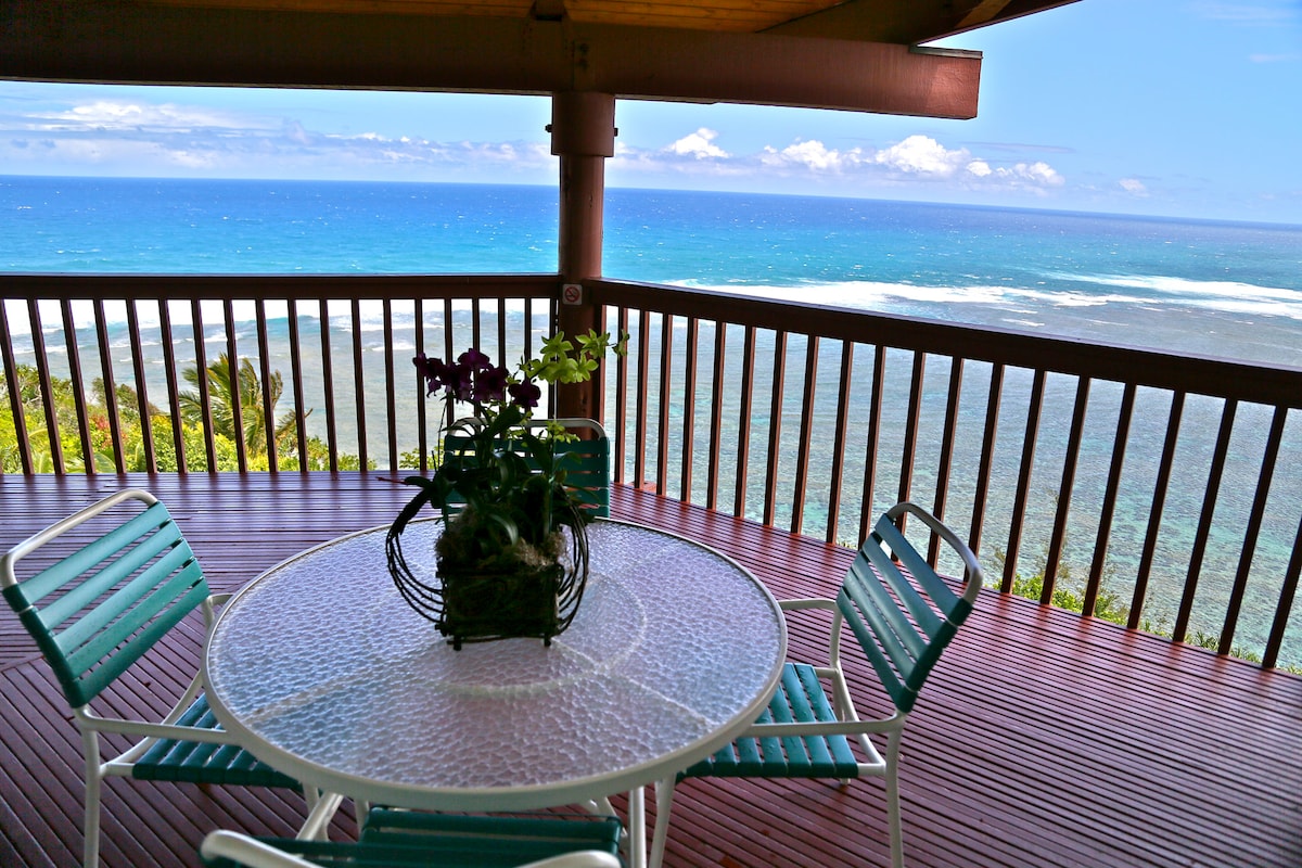 Ven a alojarte con nosotros en este complejo hawaiano Cliffs Club, ubicado en las colinas de Kauai, con vistas a la majestuosa costa norte de la isla. Este complejo es una escapada aislada en la comunidad de lujo de Princeville. Explora su jardín tropical de 22 acres en bicicleta, ve a las canchas de tenis o descansa con un libro junto a la piscina o el jacuzzi antes de ver una impresionante puesta de sol. ~ Mahalo~