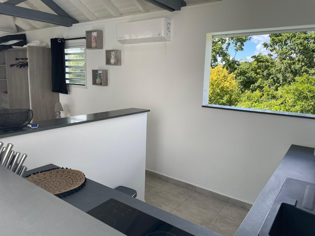 Dans un joli jardin, vous trouverez ce logement neuf situé en bas de villa. Avec entrée indépendante et sans vis à vis. Ce lieu est paisible et central car située à 200 mètre d'un primeur local, d'une boulangerie, d'une pharmacie et de commerces alimentaires. La plage de Bois Jolan est à seulement 2 km. Vous serez à proximité des magnifiques plages du bourg de Sainte-Anne, de la Caravelle ou encore de Bois Jolan. Le logement spacieux convient à un séjour en famille ou entre ami.