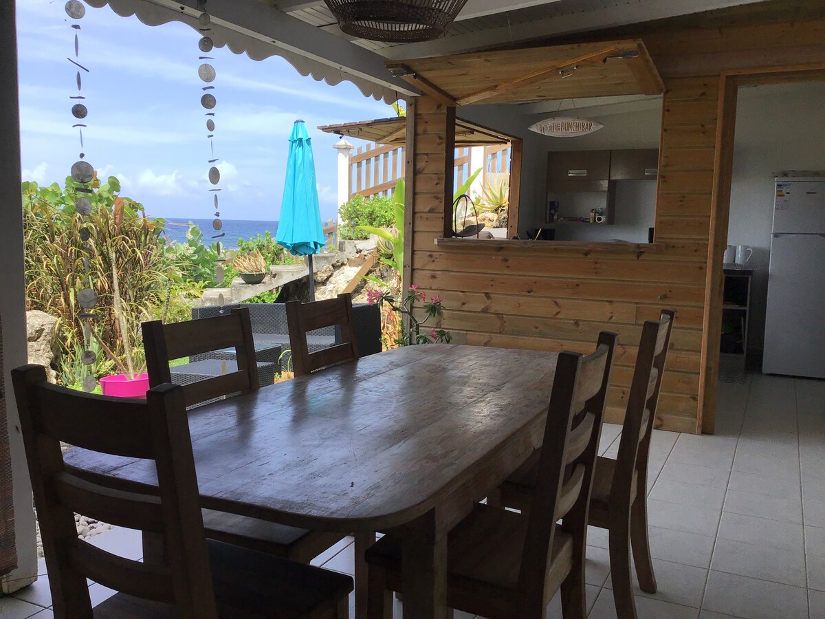 T2 climatisé les pieds dans l’eau à Sainte-Anne, avec accès direct au lagon et à la plage, terrasse en bois (deck) et jardin tropical. Cuisine ouverte avec vue sur la mer, barbecue et douche solaire, pour savourer des instants de pur bonheur face à l’eau turquoise, au rythme des alizés.
