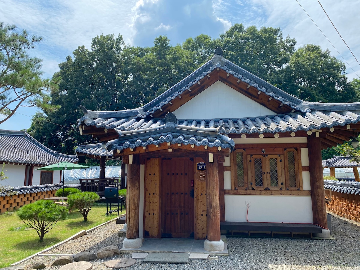 Hanok Premium (Hanok completo) Casa privada segura y completa (como mi casa) '1 lavado por uso' y limpieza higiénica (como un hotel) Lleno de aroma a carne~ Es una estancia con aroma a jengibre. Solhyang Stay es una casa tradicional de Corea construida en 2015 con la colaboración del maestro de obras y carpinteros utilizando solo madera pura cultivada en suelo coreano. El alojamiento consta de un jardín de flores de hanok, 3 habitaciones, 2 baños, una amplia sala de estar y un patio aún más amplio en un terreno de unos 593 metros cuadrados, por lo que podrás disfrutar de un espacio relajado. El hermoso patio es el patio más grande de Ochang Hanok Village. Sobre todo, es una casa privada completa que puede ser el mejor descanso y recuerdo sin la interferencia de otros (incluido el propietario) durante su estancia, por lo que solo puede experimentar 'nuestra casa feliz'. El alojamiento de los recuerdos es importante, pero la condición de higiene debe ser de '0' rango. Somos un alojamiento donde lavamos todo, incluso las alfombrillas, después de un solo uso. Siempre compartimos con confianza una valiosa casa hanok que se centra en la limpieza y la comodidad. Gracias ^ ^