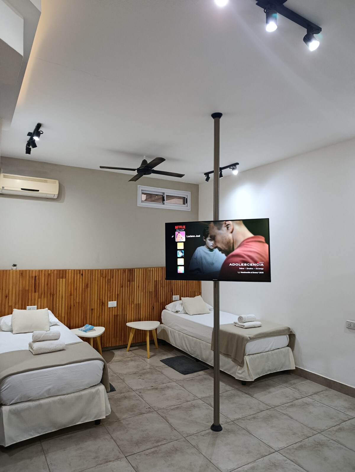 Disfruta de una experiencia con estilo en este alojamiento céntrico en la ciudad de Joaquin V. Gonzalez. El dpto. cuenta con un dormitorio con cama doble y en el living con un sofa cama para dos personas.