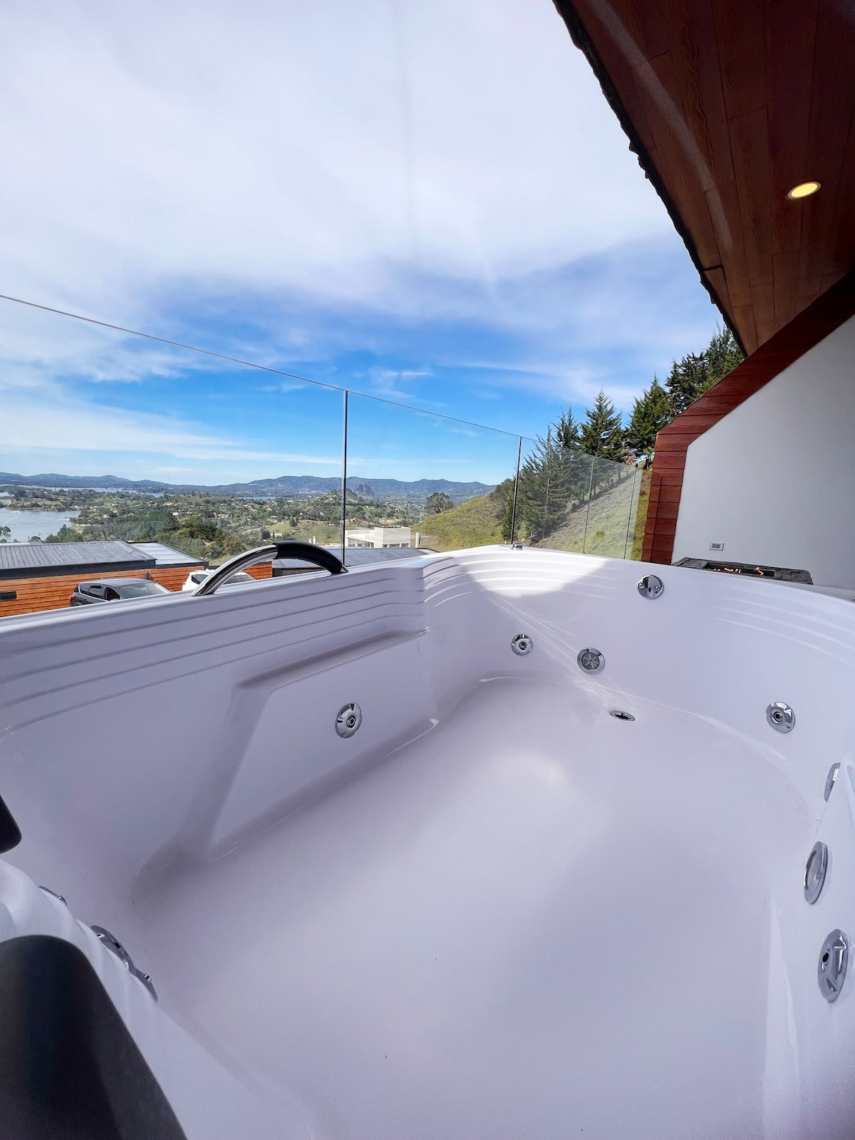 ¡Bienvenido a Montecielo, tu refugio de montaña! 🌿✨ Disfruta una vista espectacular del embalse, despertando con el sol entre las montañas y el aire fresco. Nuestra suite de lujo ofrece cama King, sofá cama y un jacuzzi privado al aire libre. Relájate en la terraza con la vista magica y cocina con total comodidad. 📡 WiFi, 📺 TV satelital, 🚗 estacionamiento gratis y 🐾 pet-friendly. A solo 15 min del Parque del Peñol. Reserva ahora y vive una escapada inolvidable.