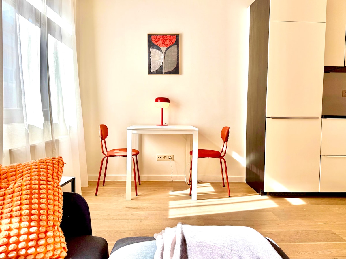 💛 Estimado lector: 💛 Una cálida bienvenida a este limpio, acogedor y luminoso apartamento tipo estudio justo al lado del amplio parque «Spoor Noord» y cerca del bullicioso centro de la ciudad de Amberes. Este es un apartamento tipo estudio, con la cama en el espacio principal como se puede ver en las fotos. La cama, los colchones, las almohadas y la ropa de cama son de primera calidad. ¡Aquí tu descanso está garantizado y te despertarás renovado, lleno de energía y listo para explorar la magnífica ciudad de Amberes!