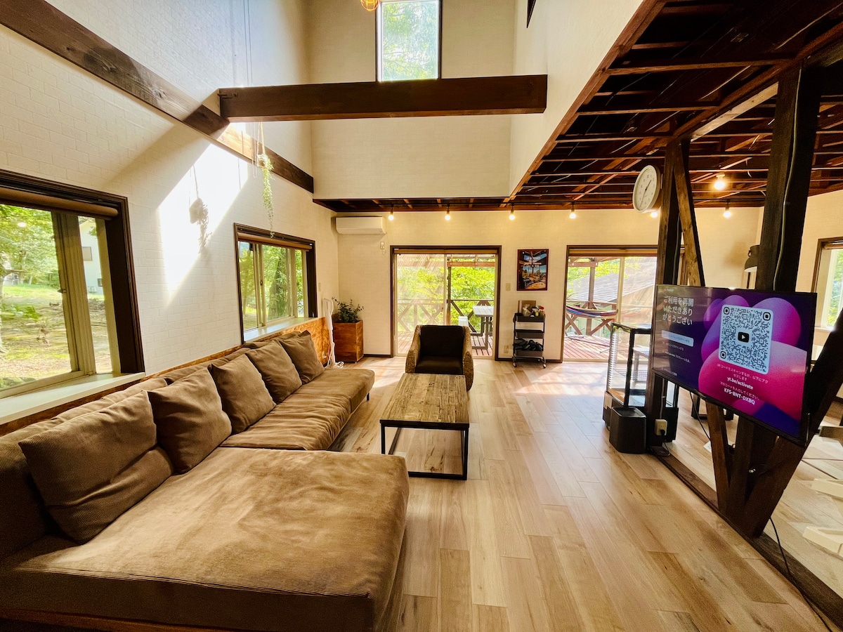 El tema de un centro vacacional asiático de "Cottage Relaxation". A 90 minutos de Tokio.¡A 4 minutos caminando de Kanno Leisure (Fishing Horizon)! Fujikyu Highland está a 26 minutos en auto. La elevación también es más alta que toda la ciudad, por lo que es un centro vacacional de verano fresco en verano. Hay una estufa de pellets en la habitación, un ajedrez necesita una parrilla de leña en la terraza cubierta y la barbacoa es lujosa. ¡Relájate en un pueblo rural, cerca de la ciudad y de los destinos turísticos! < El encanto de la casa de campo para relajarse > Interior donde puedes sentir el centro vacacional asiático con una sensación de liberación de más de 4 metros de altura en la segunda planta y sentir el centro vacacional asiático. Un espacio elegante donde puedes sentirte como un casino en el mostrador del bar. La estufa de pellets se siente como un interior en verano.¡Disfruta de espacios cálidos y llamas en invierno!Hay un fuego con un interruptor, para que cualquiera pueda manejarlo. Lujo con barbacoa en la parrilla de la estufa de leña de las famosas necesidades de ajedrez del fabricante británico con una amplia terraza cubierta de 6 metros verticales de 4 metros.(Por una tarifa o trae tu propia leña) ¡La sauna interior en el trastero renovado es una estufa eléctrica del famoso fabricante Halvia! · Puedes disfrutar de 3 dormitorios, múltiples familias, amigos, clubes, círculos, etc. ¡Todo alrededor del agua es fácil de usar en la renovación! ¡Recuerdos en el espacio relajante de un inusual centro vacacional asiático!