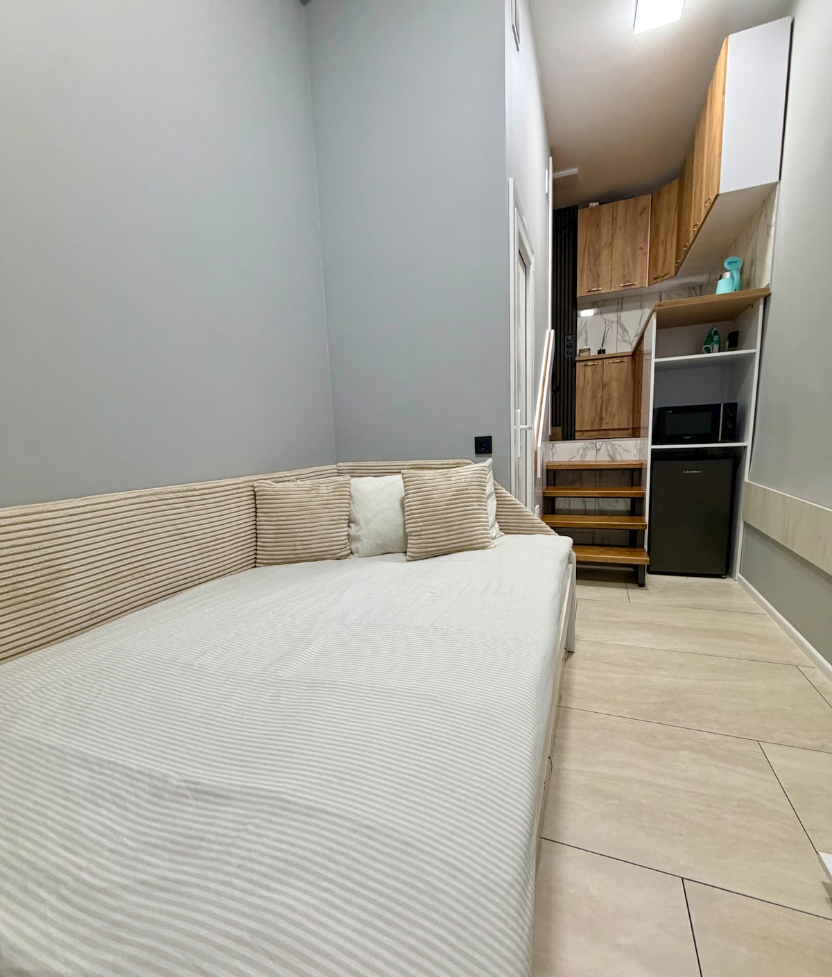 El apartamento está en el centro histórico de la ciudad y hasta 3 personas pueden encontrar un lugar en él. Los equipos de cocina son MW, cocina de inducción, hervidor eléctrico, lavadora, calentador de agua eléctrico, nevera, té, café, azúcar, sal y pimienta, filtro para agua potable. Los huéspedes pueden utilizar wifi gratuito, televisión LED, secador de pelo, plancha, tabla de planchar, ventilador de la habitación con reloj de temporizador y tres posiciones en energía. Los huéspedes reciben juegos desechables: pasta de dientes y cepillo de dientes de dientes, geles de ducha y champús, jabón.