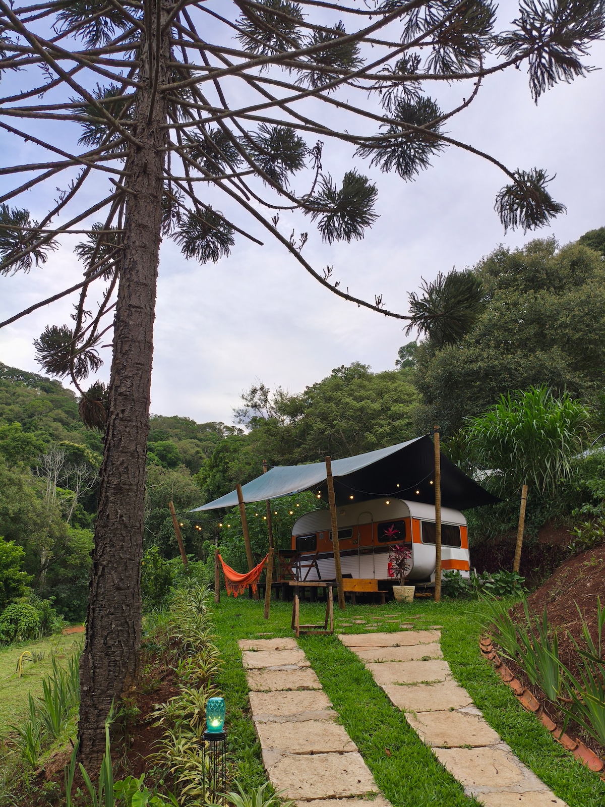 A acomodação é um trailer Brilhante Luxo restaurado, e oferece o conforto de uma acomodação tradicional, com a experiência ao ar livre de um acampamento. Conta com ar condicionado, aquecedor, fogão cooktop de duas bocas, forno de microondas e geladeira. O banheiro utiliza sanitário tradicional, e o banho com aquecedor a gás. Possui cama de casal e dinet que se converte em cama, também de casal (ideal para crianças). Oferecemos utensílios de cozinha, cama e mesa. Não oferecemos toalhas de banho.