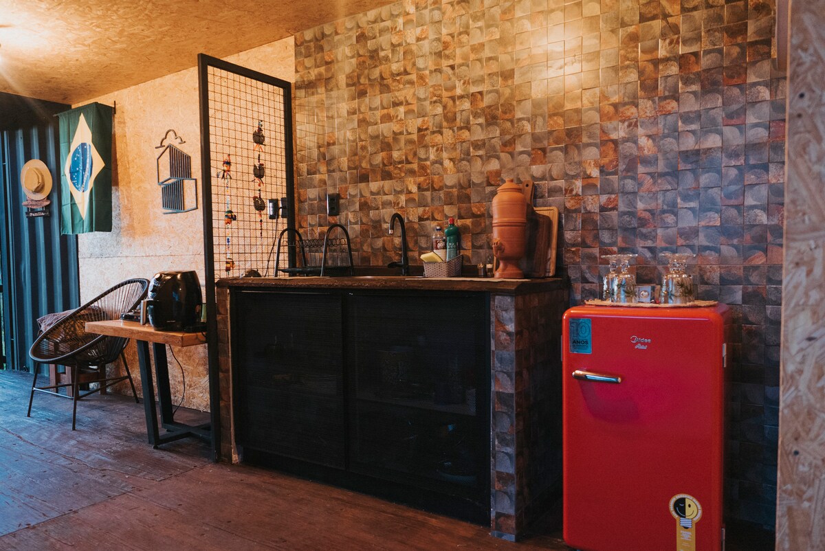 Casa Container en el bosque, un acogedor refugio donde la naturaleza y la comodidad se encuentran. Ideal para aquellos que deseen descansar y conectarse con la naturaleza. Además de toda la comodidad interior en el área al aire libre, tenemos una piscina climatizada con frente de vidrio, chimenea, terraza forestal y cancha de arena. Acceso exclusivo al Río das Almas y a un tramo del Camino de Cora. Excelente ubicación, fácil acceso y muy cerca del centro histórico de Pirenópolis @jungleboxpiri