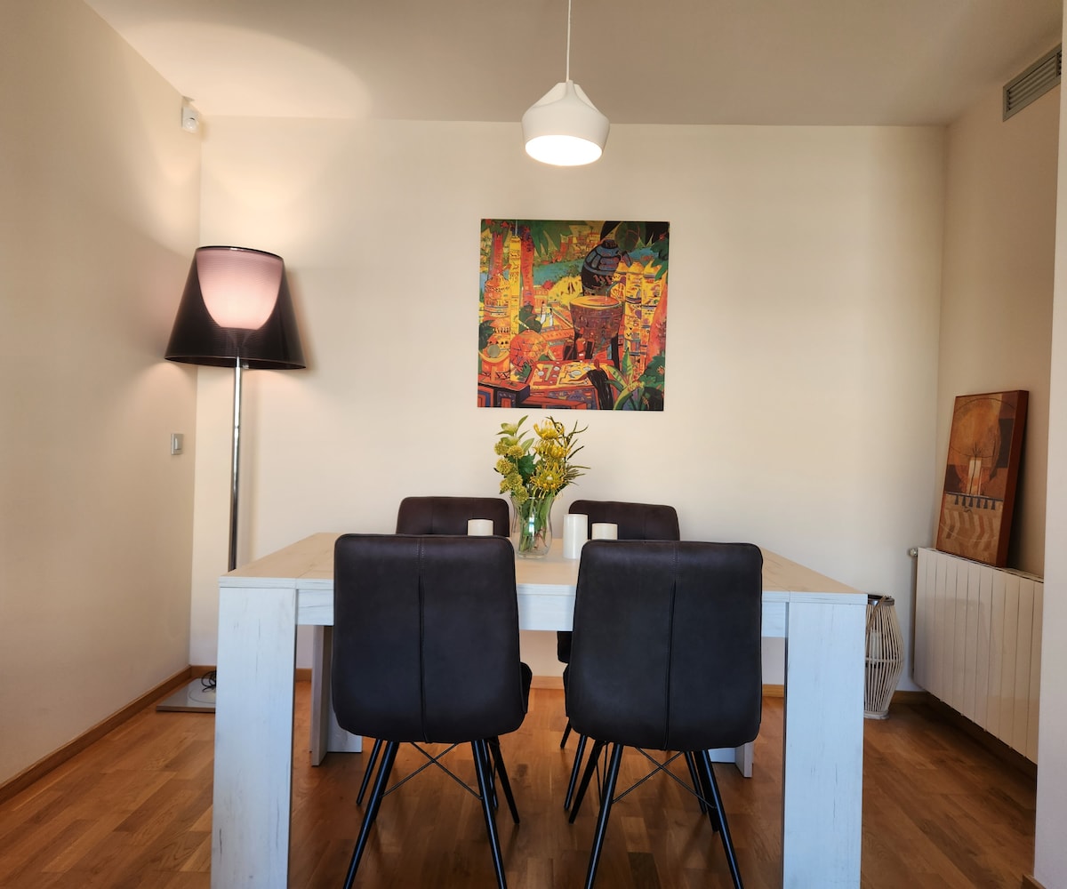 Acogedor y céntrico alojamiento en Mora de Rubielos. A 70 metros del Hotel&SPA y Restaurante La Trufa Negra. A 100 metros del centro de este fantástico pueblo, entre los 20 más bonitos de España. Ideal para familias. Dispone de una guardería justo en frente del apartamento. Parking gratuito a 1 minuto. A 30 minutos de las pistas de esquí de Valdelinares, y rodeado de decenas de rutas para hacer senderismo. Cerca de restaurantes como El Rinconcico, Pizzería Pontichelo, Fuenjamón, La Trufa Negra.