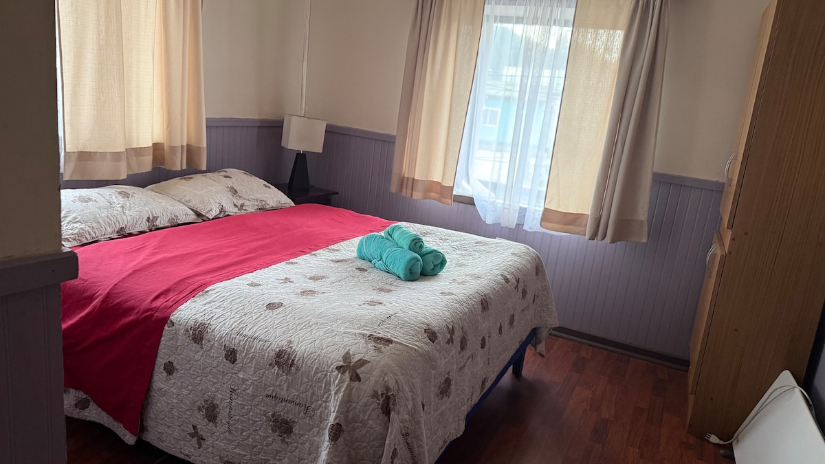 ¿Qué incluye? ° Cama matrimonial ° Baño privado ° Cocina equipada ° Calefacción ° Toallas, papel higiénico, secador de pelo ° TV en área común Nuestro alojamiento se ubica a 5 min. del centro de Pucón con acceso directo a ciclo vía y locomoción colectiva, además, cuentas con; estacionamiento, Wifi y calefacción. Beneficios Adicionales • Acceso a terrazas y áreas comunes • 50% de descuento en Mini Golf Pucón • Somos Pet Friendly
