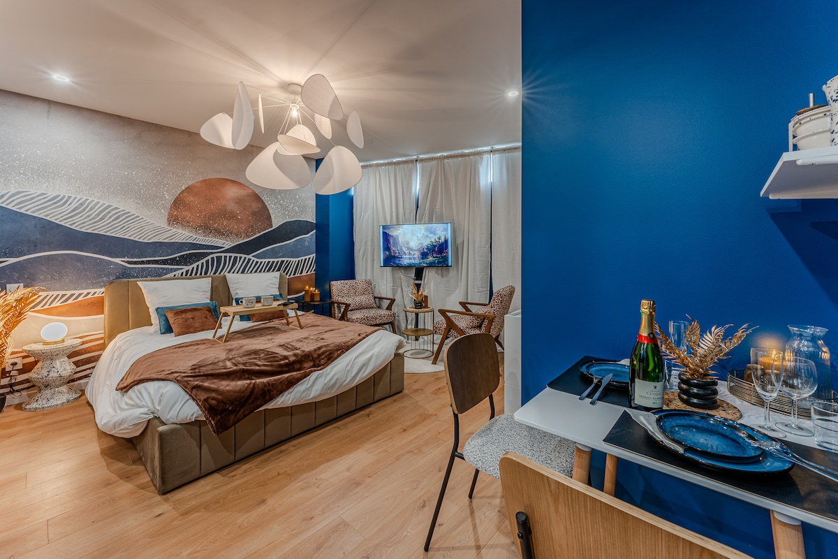 ¡Escápese en pareja en esta magnífica suite romántica a dos pasos del mar! SORPRESA GARANTIZADA Llegada autónoma con total discreción Disfrute de nuestras instalaciones privadas solo para usted en el apartamento. Accesible en el momento que desee... Baño turco moderno con luces LED para 2 y chorros de hidromasaje Sauna infrarroja para 2 Bañera para 2 (NO BALNEO NI JACUZZI) con cascada y accesorios y baño de burbujas Sillón de relajación con masaje Ambiente luminoso WIFI + AIRE ACONDICIONADO EN VERANO