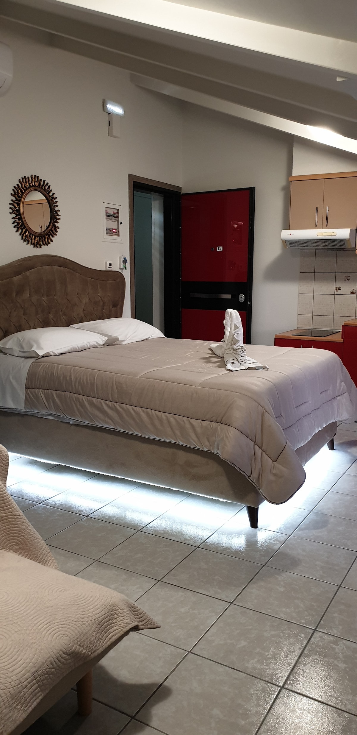 Cada estudio cuenta con: Un dormitorio acogedor con una cómoda cama doble Un baño privado equipado con ducha e inodoro Aire acondicionado refrescante para tu comodidad Televisión por satélite y wifi gratis Una cocina pequeña totalmente independiente con todo lo esencial para la preparación de comidas ligeras Ya sea que estés aquí para una escapada romántica o un retiro tranquilo, nuestros estudios proporcionan la base ideal para explorar el encanto de Agistri. Tamaño de la habitación: 28 metros cuadrados.