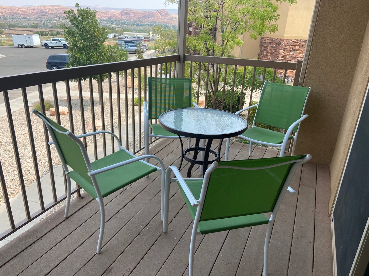 ¡Te sentirás como en casa en este nuevo condominio bellamente decorado, a solo 4 millas de Moab! Tiene 3 dormitorios, 2 baños, capacidad para 8 personas. La montaña es tamaño king, dos dormitorios tienen reinas, ¡todos son de espuma viscoelástica de primera línea para dormir bien por las noches! Encontrarás una cocina bien equipada para que tu preparación de comidas sea un placer. Tenemos una cargadora frontal Samsung de primera calidad con d si la necesitas. Disfrutarás de majestuosas vistas a la montaña desde nuestro balcón del segundo piso. ¡Tenemos otro condominio al lado si lo necesitas!