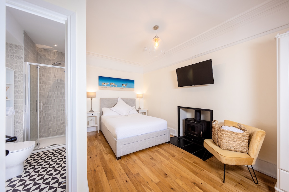 Comodidad moderna en una casa histórica. Acogedor y cómodo. Está en suite con bañera o ducha, e incluye champú y gel de ducha de cortesía. Te espera una bandeja de hospitalidad generosamente abastecida con dulces locales y una variedad de té. Televisión, cortinas opacas, secador de pelo y toallas de calidad también.