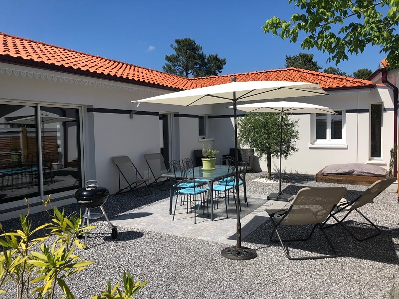 Situada en una zona tranquila de Cazaux, municipio de La Teste de Buch, esta casa cerca del lago, con aire acondicionado y totalmente equipada es ideal para una estancia agradable en familia o con amigos. Está en las inmediaciones del carril bici y de pequeños comercios. La casa dispone de 4 dormitorios, cocina abierta, bonita sala de estar con terraza, 2 terrazas, 1 de ellas con hidromasaje, jardín arbolado, barbacoa de carbón y plancha de gas, pista de petanca (bolas disponibles).
