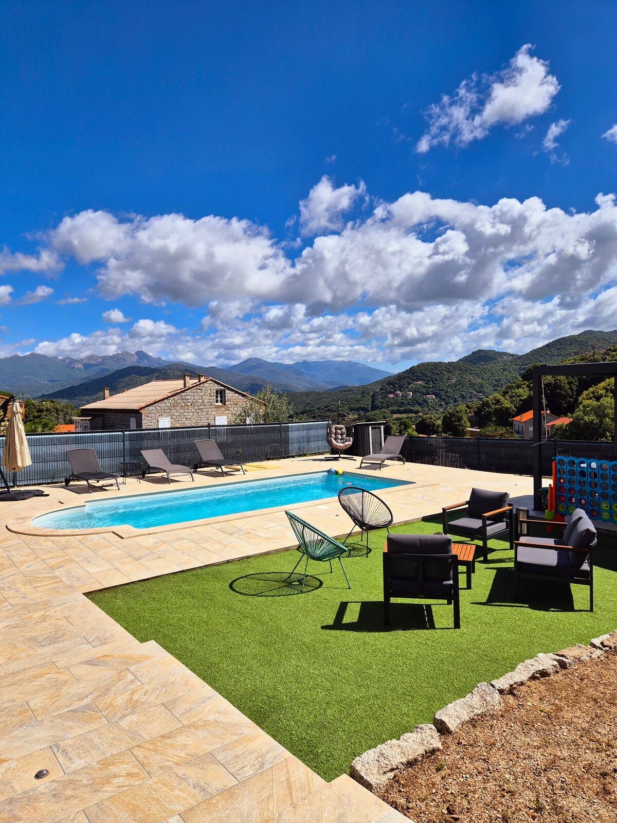 Cette bergerie affiche un style résolument unique, elle dispose d'un jacuzzi privatif. Une grande piscine commune. Une terrasse en bois suspendue au dessus d’une splendide rivière avec vue imprenable sur la vallée du Travu. Un endroit authentique où détente et relaxation seront les mots d'ordres de votre séjour ou vous pourrez profiter d'une nature luxuriante, d'activités comme le canyoning et une des plus belle Via Ferrata d'Europe ainsi que découvrir l'une des plus belles rivières de Corse.
