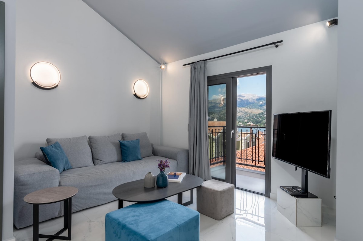 The Veranda Suite will be your luxurious paradise on the island. With a magnificent view of the bay of Argostoli, the spacious suite harmoniously combines modern decoration and high technology, satisfying the requirements of even the most demanding guests. The most impressive feature of the Veranda suite is the balcony, where you can spend several hours relaxing in the private Jacuzzi under the Ionian sun.