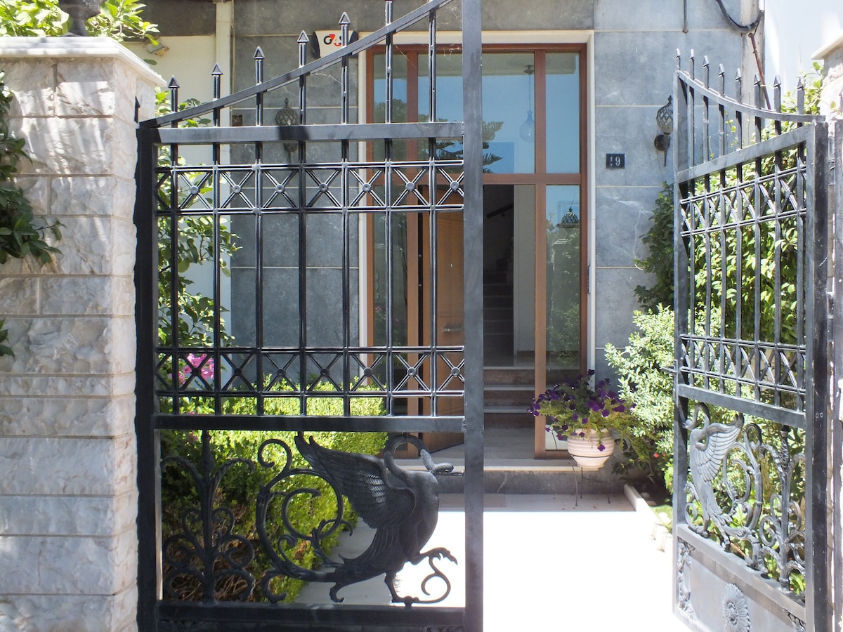 El moderno apartamento ático de 60 m2, renovado y ubicado en el quinto piso, se encuentra a solo 4 minutos a pie de la estación de metro Panormou, en la línea del aeropuerto, ¡un «campamento base» tranquilo ideal para explorar Atenas! Cuidadosamente diseñado y decorado por mí como arquitecto, el apartamento está totalmente equipado con todo lo que uno desea, dos televisores inteligentes (en el dormitorio y la sala de estar) y una bonita chimenea. Dos enormes balcones con plantas a ambos lados con impresionantes vistas panorámicas a la ciudad y a la montaña de Ymitos. ¡Disfruta!