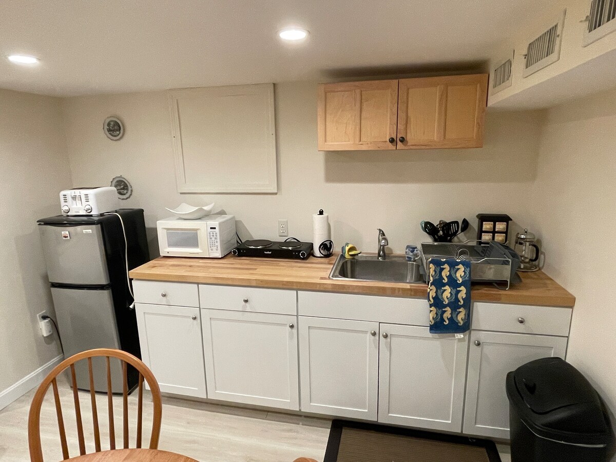 Descubre el encanto de nuestro encantador estudio de 300 pies cuadrados, cuidadosamente diseñado para tu comodidad. Este acogedor espacio cuenta con una mininevera bien equipada, microondas y hervidor de agua, lo que garantiza tu comodidad durante tu estancia. Descansa profundamente en la lujosa cama queen y, para un alojamiento adicional, el sofá se transforma fácilmente en una segunda cama.