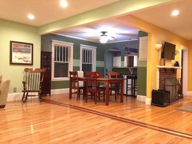 Just a little bit of everything for everyone to have a spectacular time in Boston, perfect for family gathering ! A funky and quirky cozy 4-bedroom brickhouse smack right in the middle of Arlington Center. 10 mins to Harvard Square, 15 minutes to Boston and Logan airport. Sleeps 8 - 2 bathrooms. Short 1 minute walk to cafes and restaurants. Discounts available for longer stays. Strictly no parties or unapproved pets.