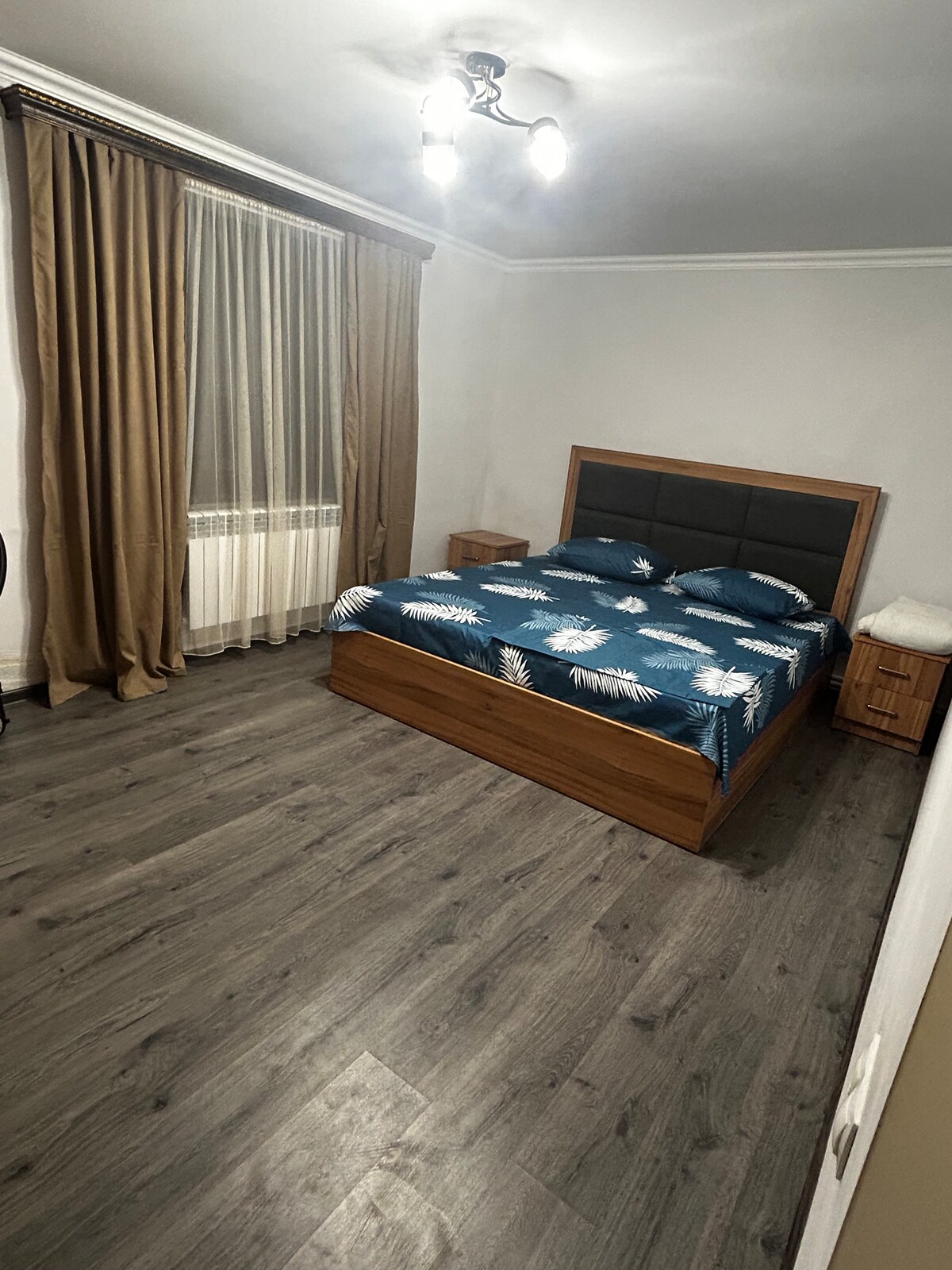 Un moderno y acogedor apartamento de dos habitaciones en la planta baja. Un dormitorio espacioso con una cama cómoda, una luminosa sala de estar con un sofá y una zona de trabajo, una cocina totalmente equipada donde puedes cocinar. El departamento cuenta con wifi, aire acondicionado, ropa de cama limpia, toallas y todo lo que necesitas para una estancia cómoda. El lugar es adecuado para familias, parejas e invitados que aprecian la paz y la comodidad.