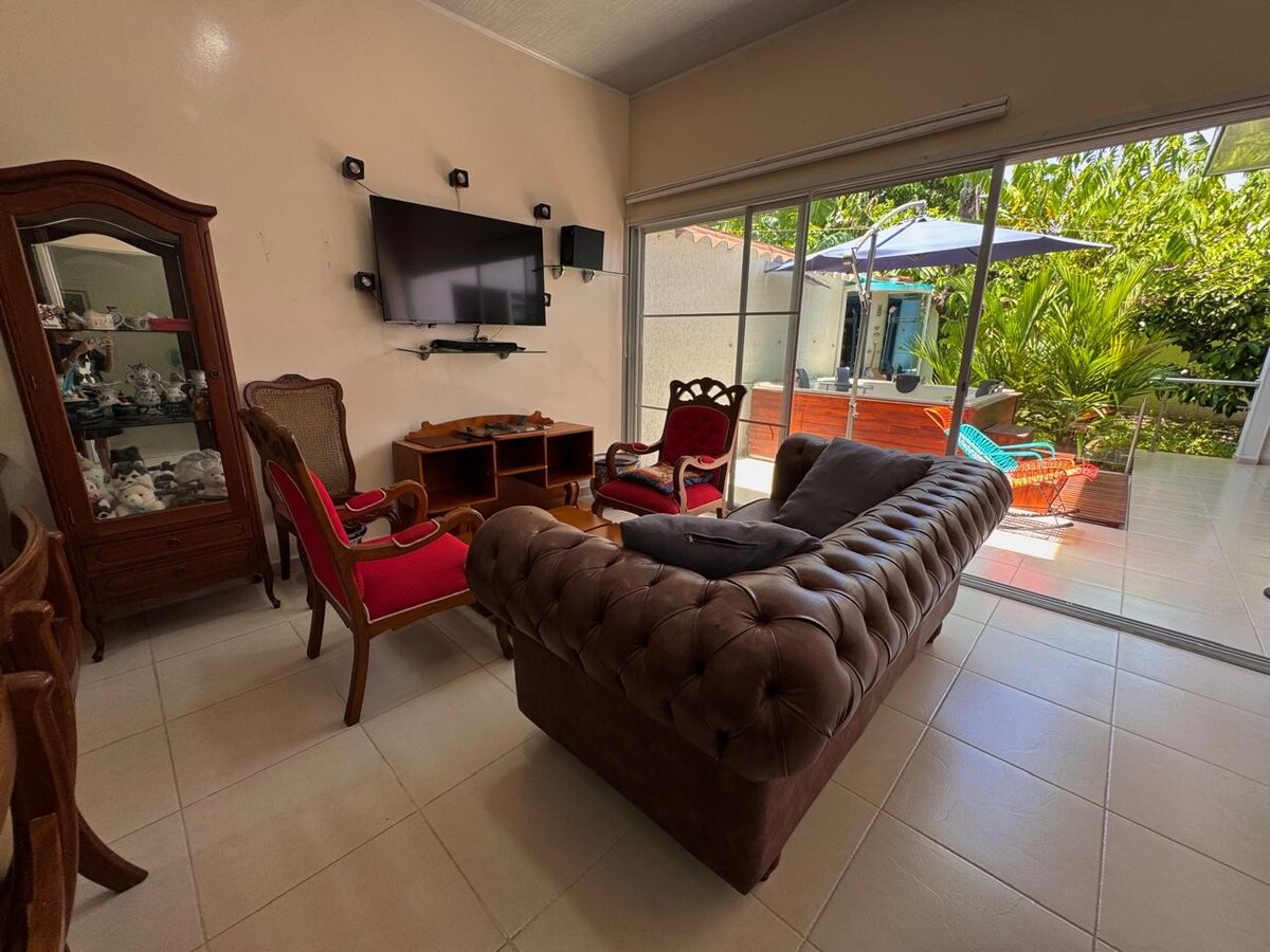 Acogedora casa, lugar perfecto para unas vacaciones en familia o con amigos. Con cuatro amplias habitaciones y dos baños, ofrece comodidad hasta para 16 personas. Cocina completamente equipada, lo que facilita la preparación de deliciosas comidas caseras. Cuenta con un relajante jacuzzi para disfrutar después de un día de aventuras. Las amplias zonas comunes permiten compartir momentos especiales en familia. ¡Una experiencia única en un entorno encantador te espera en esta casa en Guayabal!