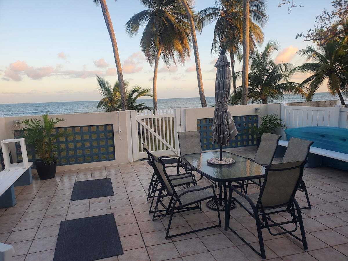 ¡Quítate los zapatos y relájate en nuestra villa frente al mar recientemente renovada, donde serás transportado instantáneamente al paraíso! Relájate bajo las palmeras en una de nuestras hamacas y disipa tus preocupaciones mientras disfrutas de las hermosas vistas y la fresca brisa del mar. Esta propiedad frente al mar ofrece acceso directo a una playa tranquila y apartada, una piscina comunitaria, canchas de tenis y baloncesto, columpios, una sala de lavandería de pago y acceso privado