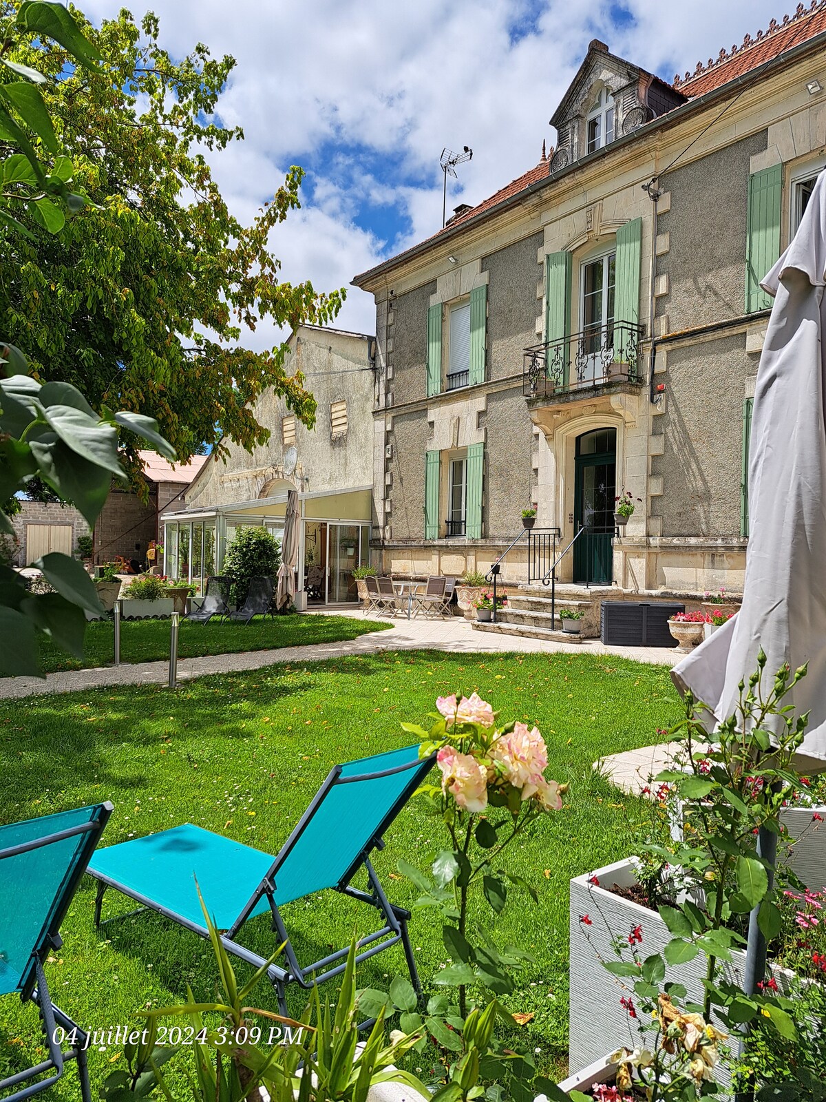 Una hermosa casa de piedra situada en terrenos privados, por su propio camino rodeado de viñedos de coñac. Un exterior de 200 años, con un interior de estilo 'Hotel Boutique' muy moderno y con todas las comodidades. Terraza y muebles de exterior y uso de la piscina (normalmente abierta el 1 de junio, pero puede ser antes, dependiendo del clima).