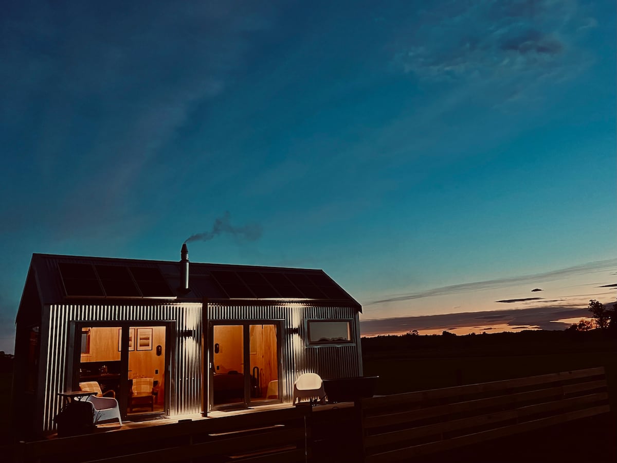 * Cabaña ecológica de lujo situada en el borde del bosque con unas vistas impresionantes a los cuatro picos del sur de Canterbury, con salida al mediodía "sin prisas" * Cama tamaño king con fuego de leña en la sala de estar de planta abierta. * Piscina de inmersión alimentada por manantial * Jacuzzi de leña - $ 70 por una noche ($ 100 por 2) * Impresionante cielo oscuro para observar las estrellas. Excursiones a Tekapo, Monte Cook, Señor de los Anillos, * Geraldine para cafés/restaurantes/museos * Barbacoa y sofá en la terraza, canto de aves nativas, * Desconexión: pantalla y wifi gratis (acceso a datos móviles).