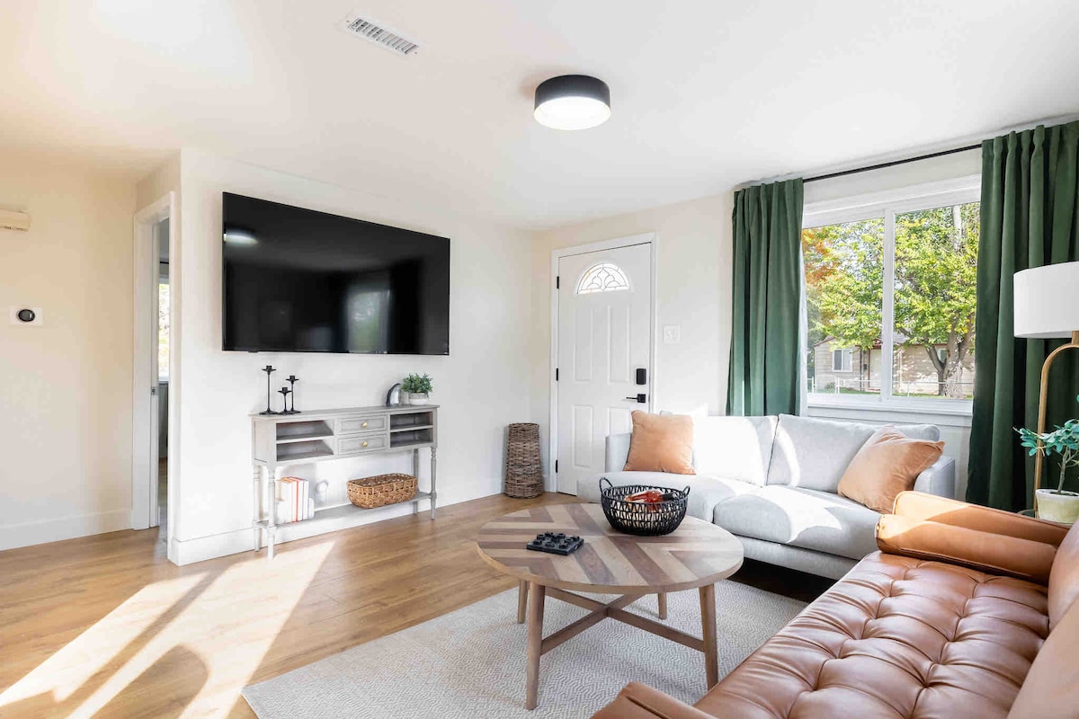 Bienvenido a The Ames CO, tu refugio moderno de mediados de siglo diseñado para la conexión, la comodidad y la aventura en Colorado. A solo 12 minutos de DT Denver, a poca distancia a pie de la línea G. Perfecto para organizar una celebración, ver un partido de las Rocosas, un espectáculo de Red Rocks o simplemente quedarse para sumergirse en el jacuzzi. Capacidad para 10 personas cómodamente + 2 con colchón inflable Habitación 1: King (baño privado, duchas dobles, bidé) Dormitorio 2: Queen (acceso al baño) Dormitorio 3: 2 camas tamaño queen (baño compartido) Habitación 4: Queen (baño compartido)