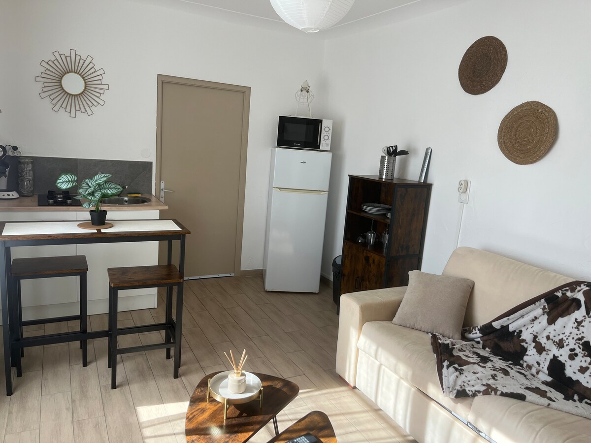 Disfrute de un alojamiento nuevo, elegante y con una ubicación ideal. Este T2 renovado consta de un dormitorio, un salón/comedor, cocina y baño con inodoro. Situado a 15 minutos a pie de la catedral, a 5 minutos del estadio, podrá disfrutar de todas las comodidades. Trabajador o turista, tiene una entrada privada y aparcamiento gratuito. Bajo petición: - Posibilidad de guardar su vehículo de 2 ruedas en un garaje cerrado. - Instalación y preparación de una segunda cama (si hay 2 camas separadas).