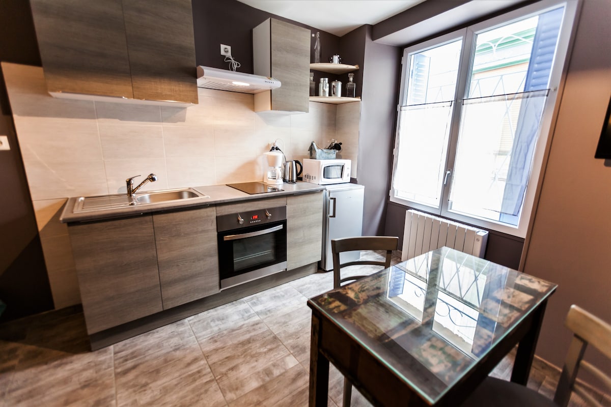 Magnífico estudio de 4 plazas con vistas a la montaña y a Ariège. Cerca de la estación de tren y el centro de la ciudad de Ax les thermes. Camino peatonal a lo largo del río para acceder al centro de la ciudad de Ax. Armario para esquís y aparcamiento gratuito en el lugar. estudio en la 2 .ª planta con ascensor. Un sofá cama doble en la sala de estar y una litera de 2 plazas en habitación separada. Baño con bañera y cocina totalmente equipada. Balcón sin vecinos con pequeña mesa de exterior. No se proporciona ropa de cama.