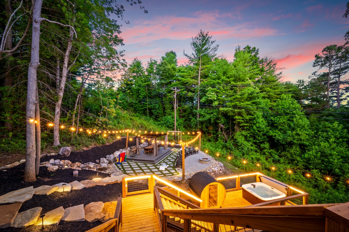 Luxe•5 millas a Asheville•Jacuzzi•Fogata•Vistas a la montaña